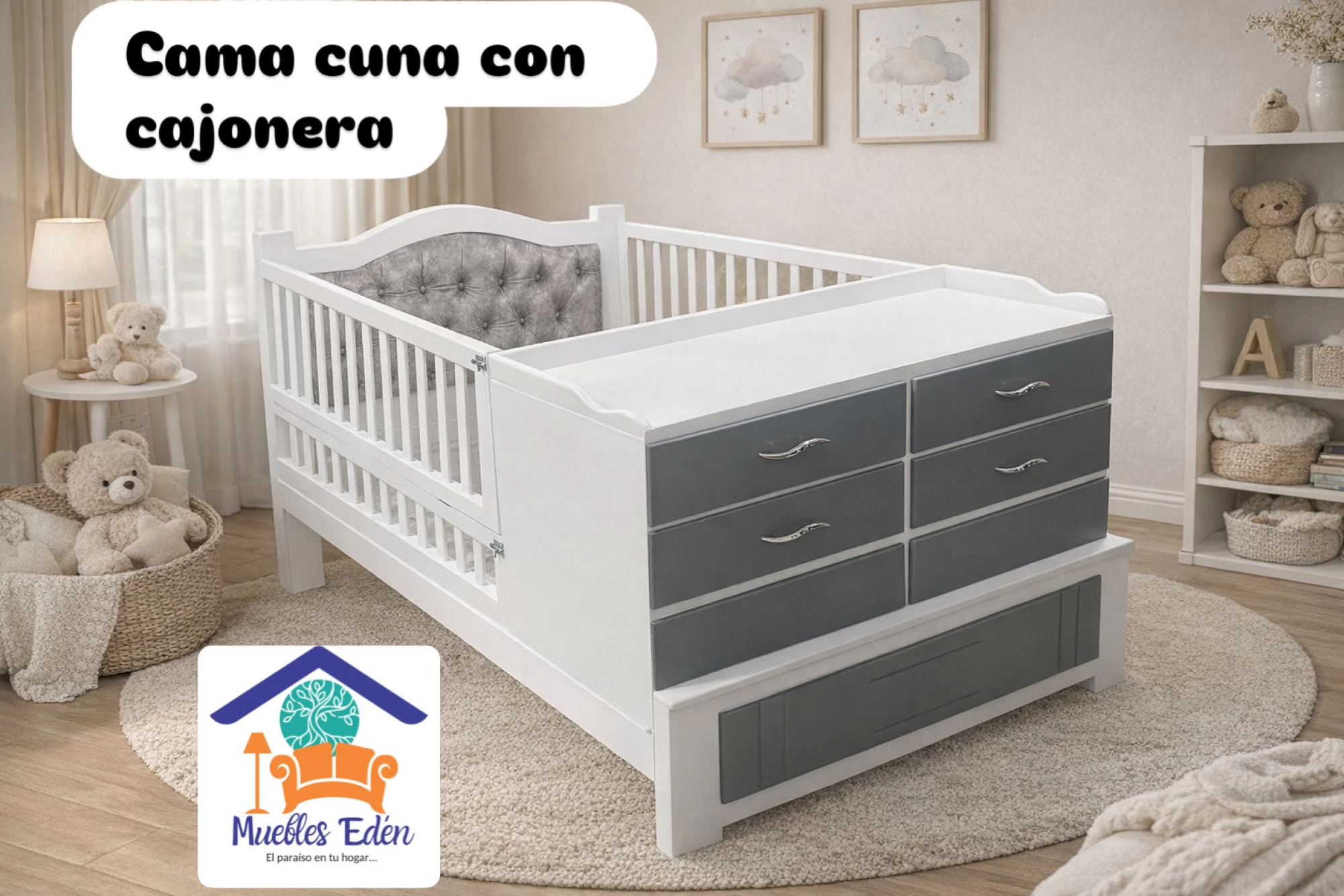 ¡El descanso que tu bebé merece y la practicidad que tú necesitas! ✨Nuestra Cama Cuna 2 en 1 es la inversión inteligente para tu hogar. Úsala como una cómoda cuna con corral plegable y cajonera integrada, y cuando tu peque crezca, ¡conviértela en su primera cama normal! 👶➡️👦✅ Corral plegable de fácil acceso.✅ Piezas removibles para una transición sencilla.✅ Espacio amplio de 100 cm x 190 cm.(No incluye colchón).
